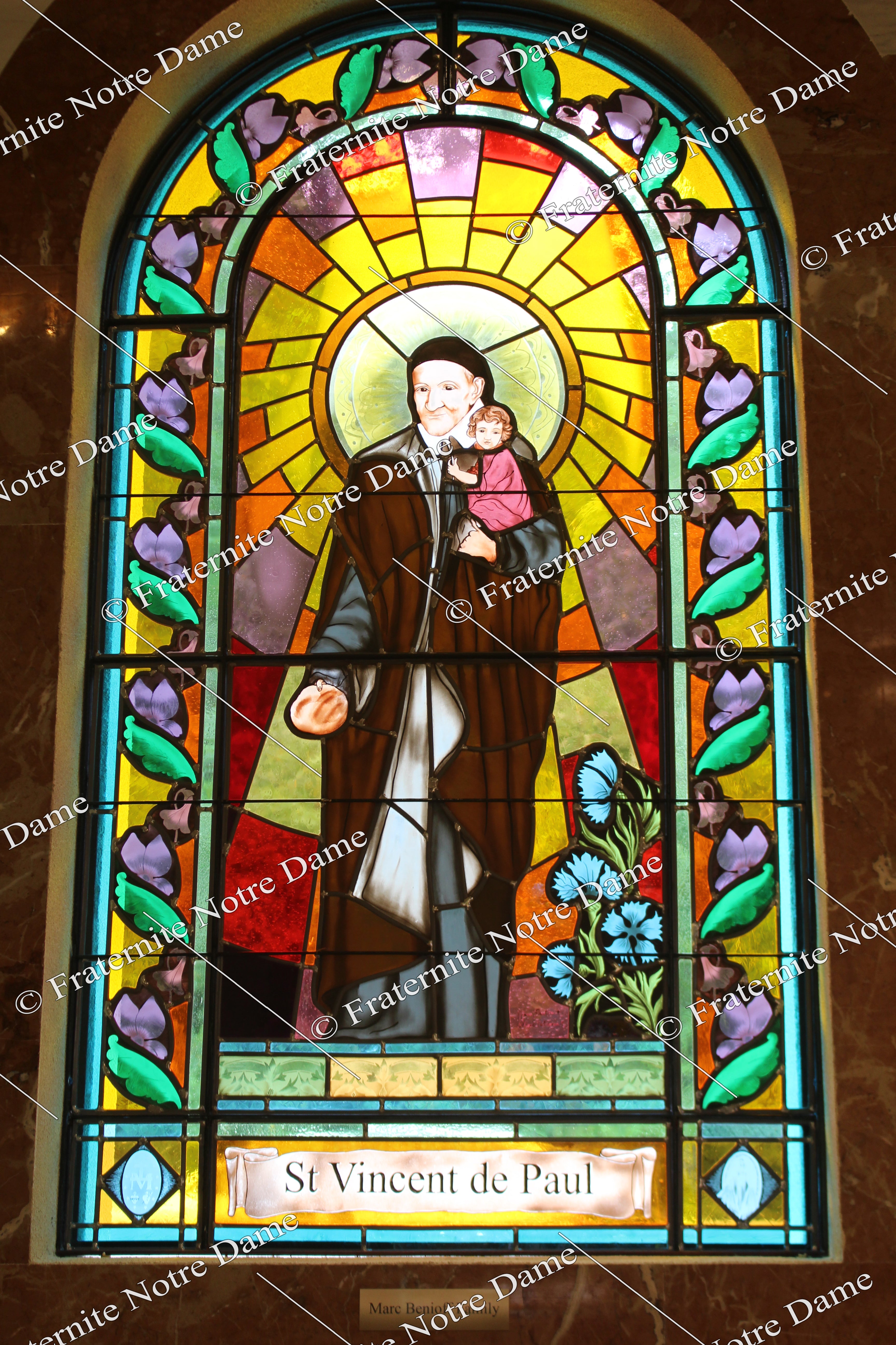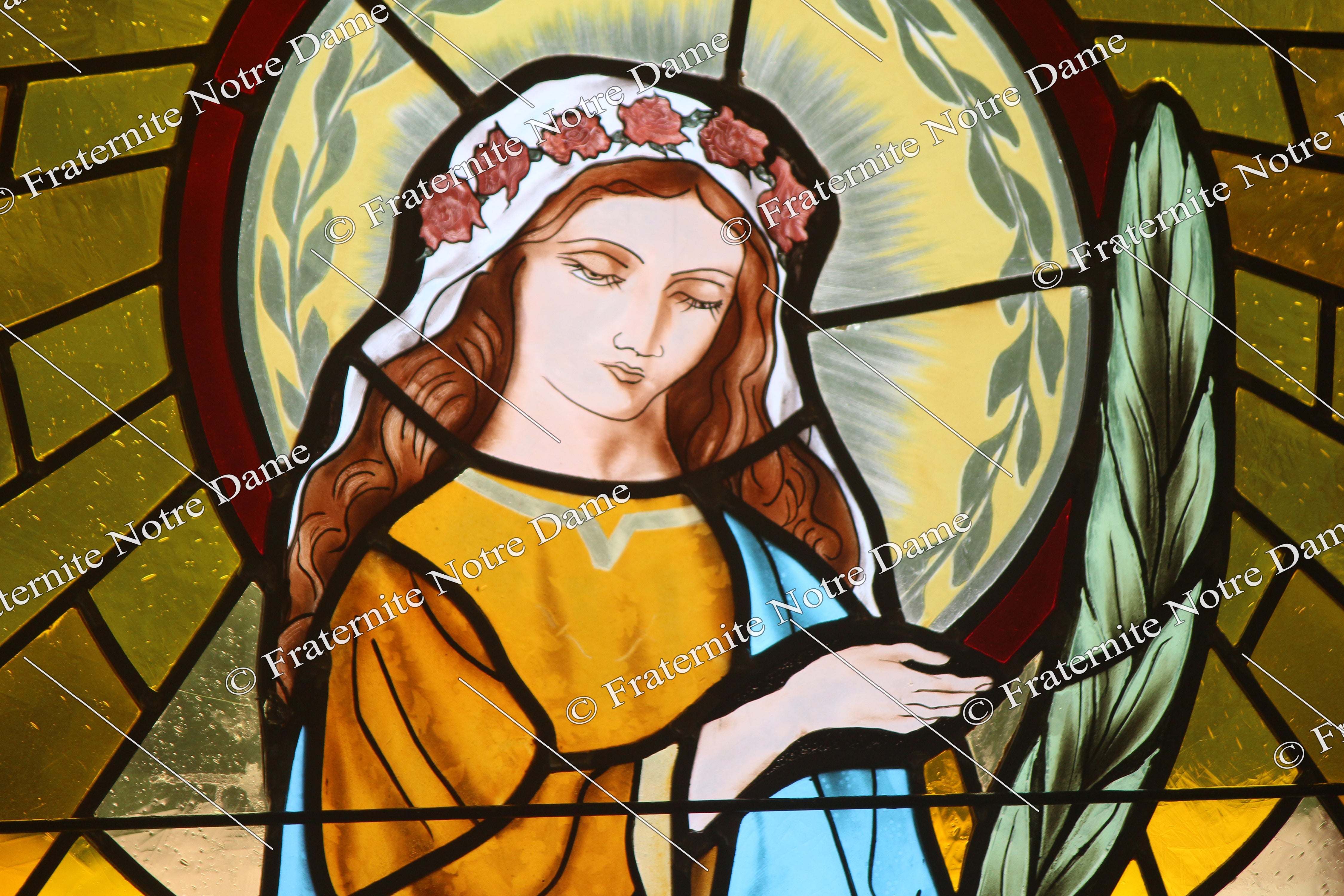 Just as the Virgin Mary gives birth to Jesus, the Light of the world, by remaining a virgin, the light filters through the stained glass without altering it. When the glass is colored, the symbolism deepens: the light takes on the color of the glass in the image of God who, having passed through the Virgin Mary, took on his nature or his humanity to become incarnate in Jesus.