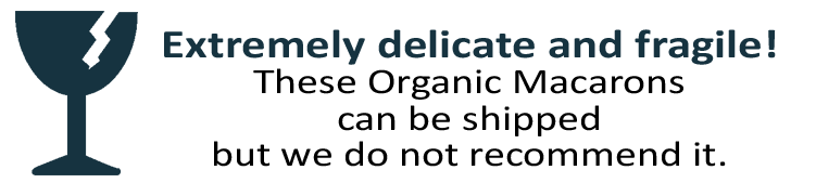 Ingredients Present in All 6 Macarons: Organic egg white, organic almond meal, organic evaporated cane juice, organic powdered evaporated cane juice. Ingredients Specific to a Particular Macaron: Organic French Chocolate-Mint Macaron: organic semisweet chocolate, organic butter, organic heavy whipping cream, organic cocoa, organic mint oil, organic beet juice powder, blue shade vegetable color powder, curcumin powder. Organic French Vanilla Macaron: organic heavy whipping cream, organic white chocolate, organic vanilla extract. Organic French Chocolate-Raspberry Macaron: organic heavy whipping cream, organic milk chocolate, organic Raspberry jam, organic cocoa, organic butter, organic beet juice powder. Organic French Lavender Macaron: organic white chocolate, organic heavy whipping cream, organic peach, blue shade vegetable color, organic beet juice powder, organic lavender oil. Organic French Hazelnut-Milk Chocolate Macaron: organic heavy whipping cream, organic milk chocolate, organic hazelnut spread (with cocoa and milk), organic cocoa. Organic French Strawberry Macaron: organic white chocolate, organic strawberry, organic cocoa, organic beet juice powder.